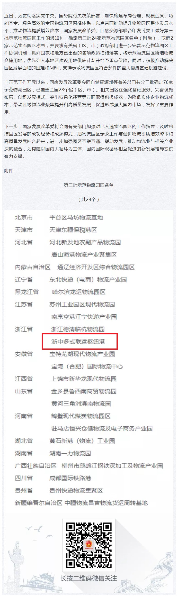 國家發(fā)展改革委 自然資源部聯(lián)合發(fā)布第三批示范物流園區(qū)名單