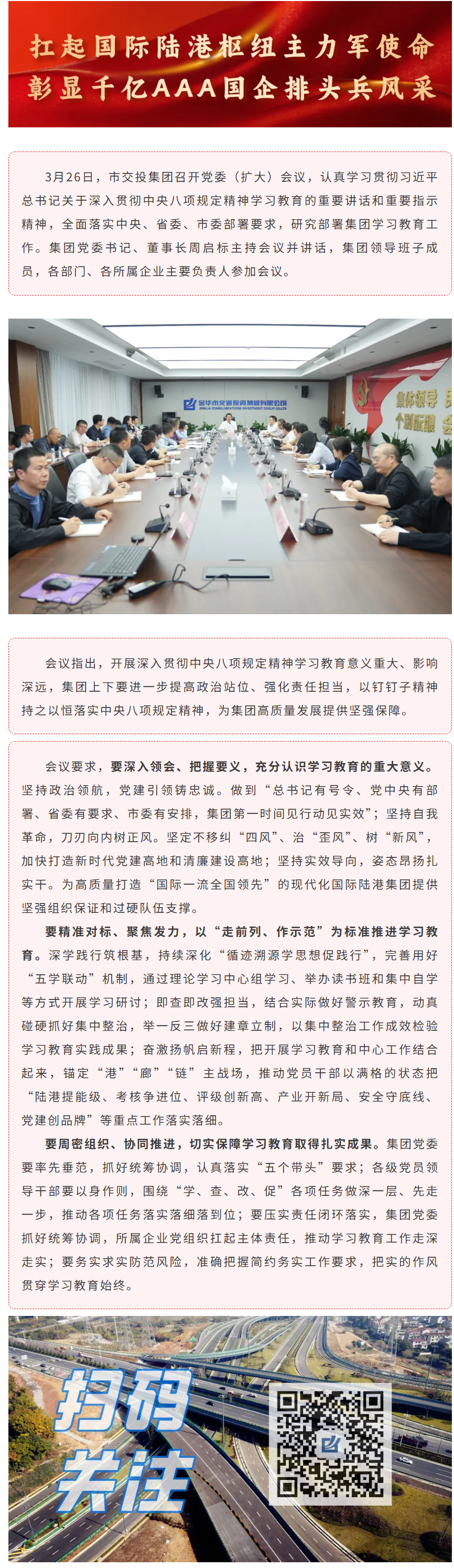 市交投集團(tuán)召開(kāi)黨委(擴(kuò)大)會(huì)議研究部署深入貫徹中央八項(xiàng)規(guī)定精神學(xué)習(xí)教育